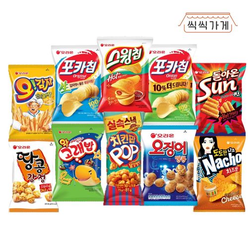 [씩씩가게] 오리온 봉지과자 10종(썬 포카2종 스윙칩 오땅 땅강 나쵸 오감자 왕고래밥 치킨팝)