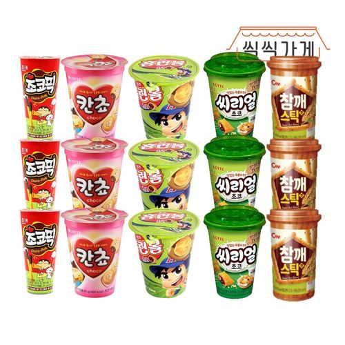 [씩씩가게] 컵과자 5종 3개씩 (홈런볼 컵, 씨리얼 컵, 칸쵸 컵, 참깨스틱, 초코픽)
