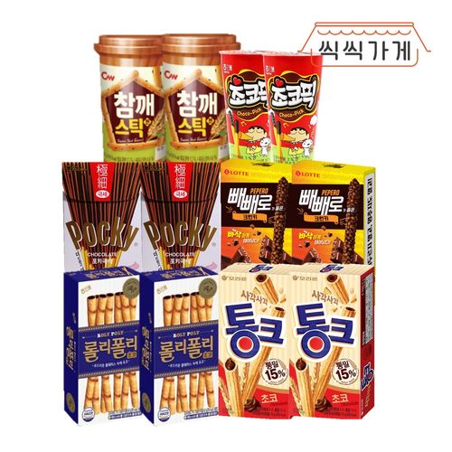 [씩씩가게] 빼빼로데이 필수 막대과자 6종 2개씩(포키 롤리 통크 크런키 참깨 초코픽)