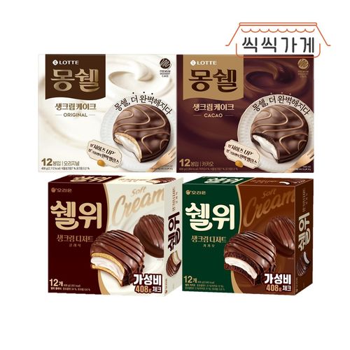 [씩씩가게] 쉘위 408g 오리지널, 카카오 + 몽쉘 408g 오리지널, 카카오 1개씩