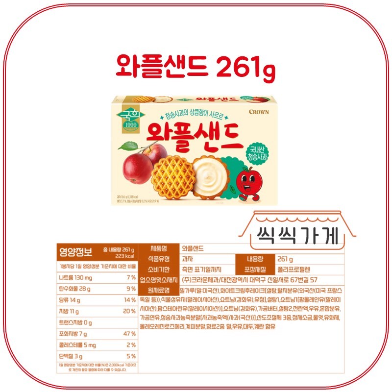 | 식품의 유형 | [씩씩가게] 와플샌드 261g x 3ea |